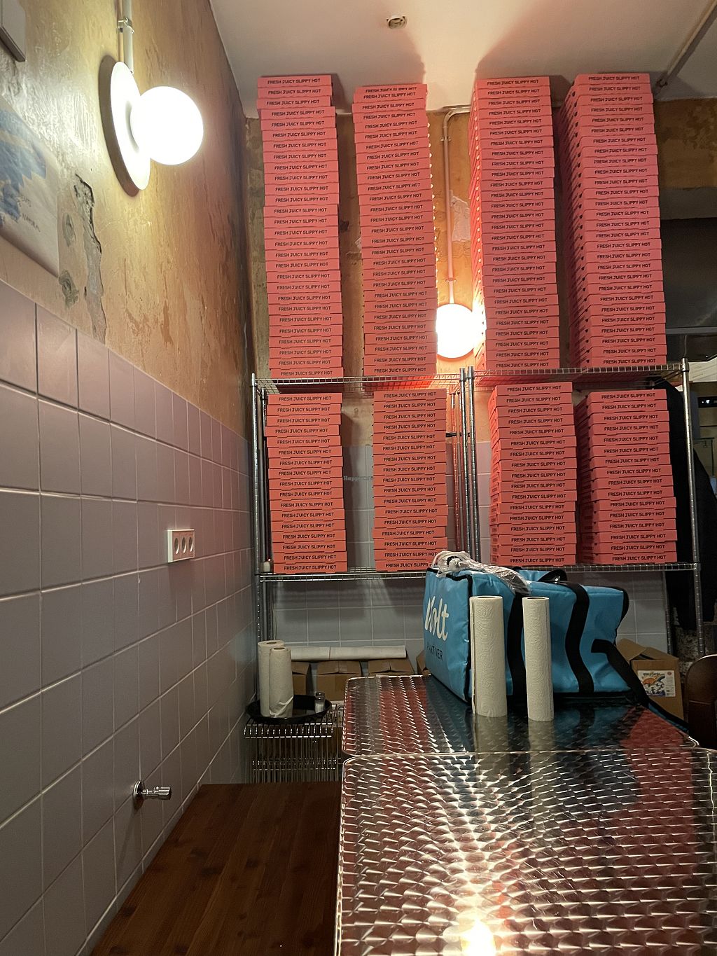 The door is constantly open due to all the delivery services and takeaway customers.