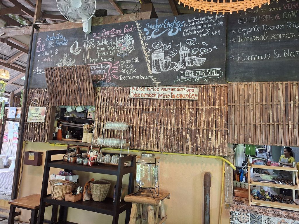 Vegetarian and vegan cafe serving desserts, a variety of drinks like smoothies, herbal and organic tea and coffee, and western style food like sandwiches and pasta. Sells Thai herbs, natural body care and other products. Gluten-free options available. Dog-friendly. Delivery via Food Butler Pai app. Open Mon-Fri 9:30am-4:30pm, Sun 9:30am-4:30pm. Closed Sat.