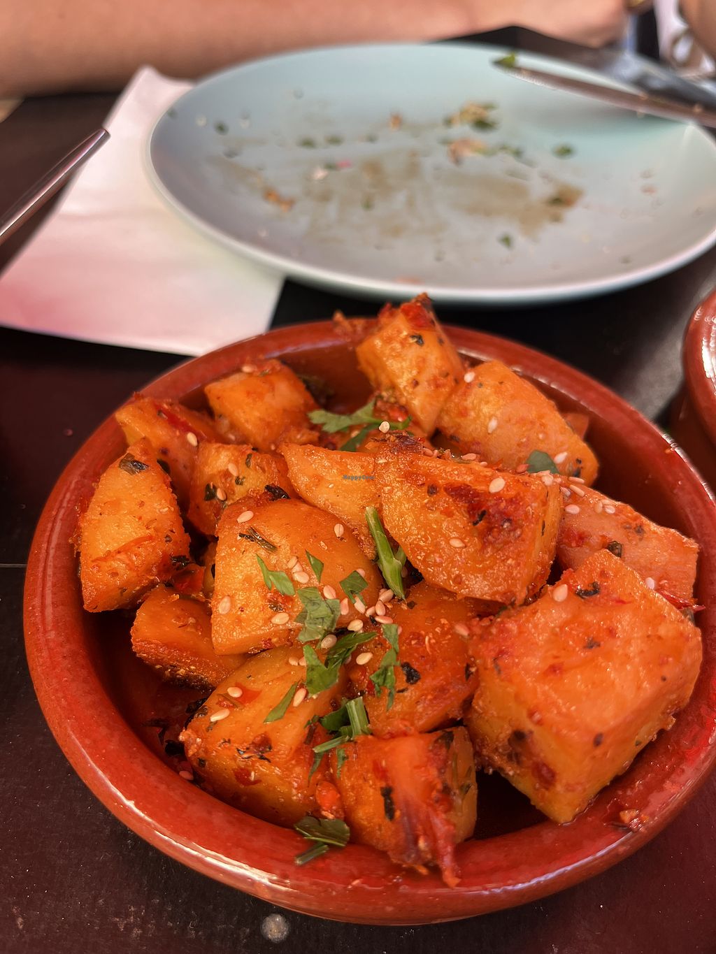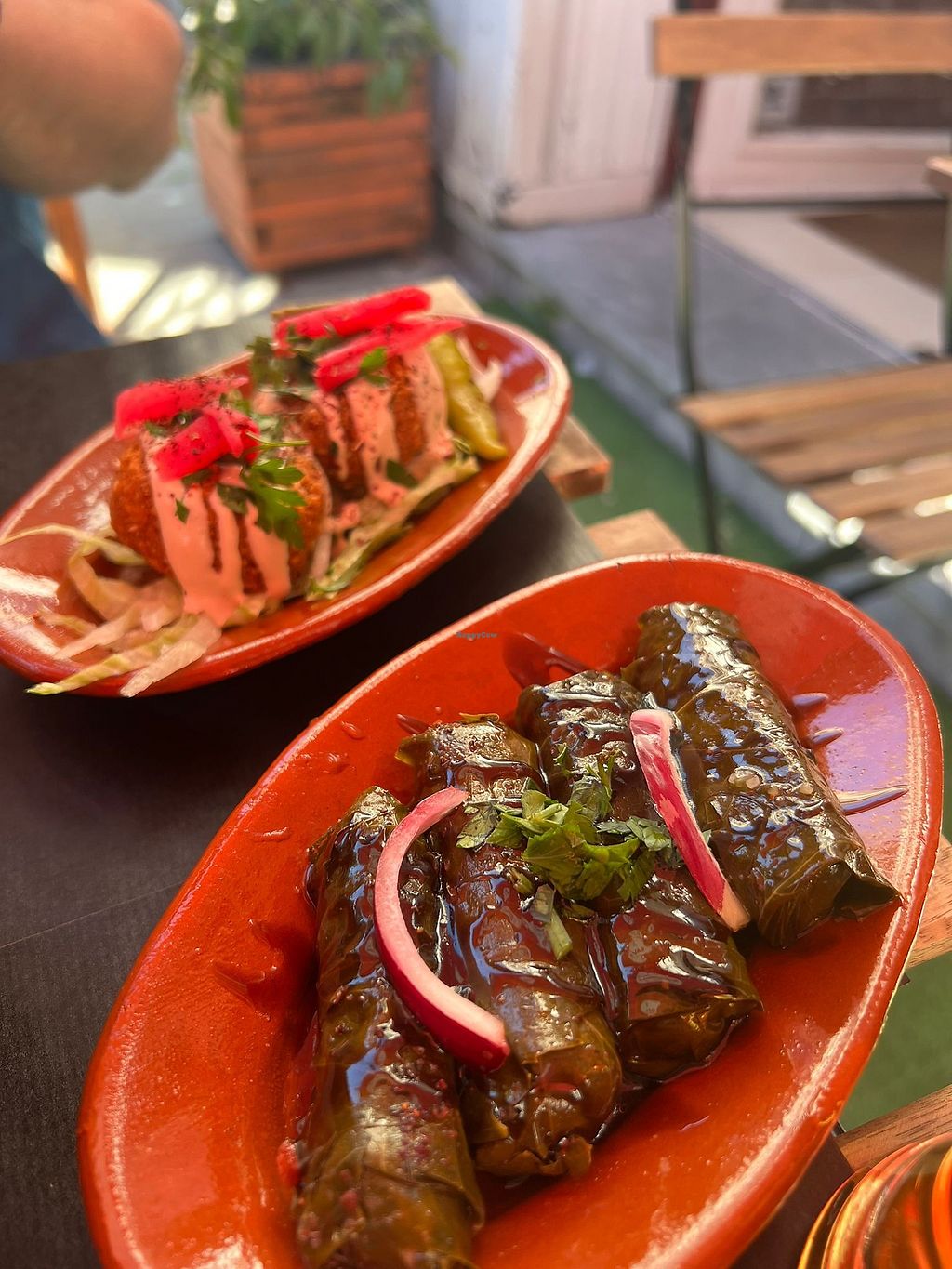 I really enjoyed coming here for dinner. Tried one of the two vegan mezzes, which was delicious (asked without oil on top, which they accommodated without a problem). The dessert halva (vegan) was just crazy good, the combination of the tahini with the pistachios is top! Very friendly and professional staff too.