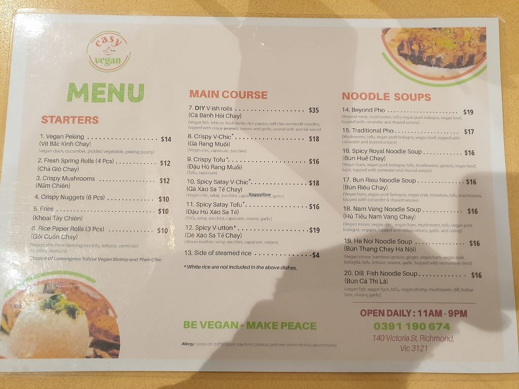 - Google Map's Top Rated Restaurant. I was in the North Richmond area and Easy Vegan showed up as the Top Rated Vegan Restaurant near me so I decided to try and that was the moment I knew this would be my go-to from now on. Nam is the legend! Cảm ơn🤍🙏