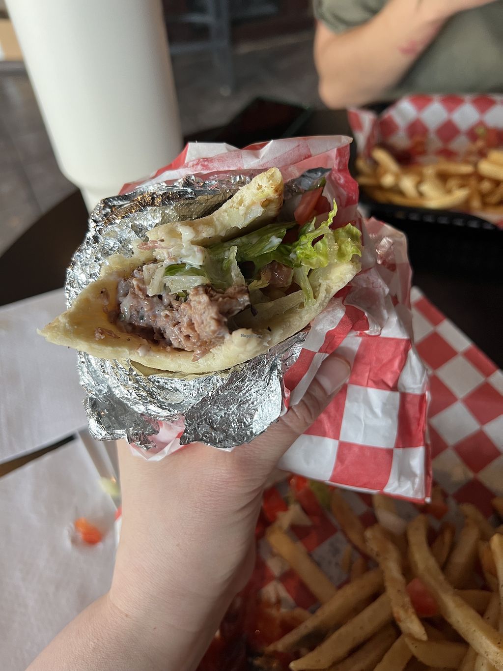 Vegan beef shawarma 10/10 super flavorful and filling, soooo many vegan options on the menu including sauces and cheese. Super fresh, good portion size, love the interior