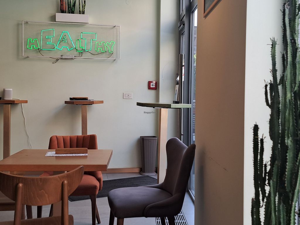 Read morePros: Nice interior design, The entire menu is plant-based, Outlet for charging & Wi-Fi