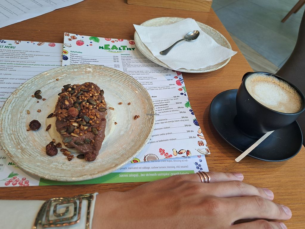 I ordered online and found that the menu is quite large. They offer specialty lattes, all day breakfast, a dessert menu with 17 items, a burger, forbidden rice, a sort of taco; the list goes on. I ordered Indian Dahl, Quinoa Napolitana, and Tiramisu. The portions are indeed large, but the food is pricy. Dahl is 850 RSD and honestly, it’s considered one of the most cost efficient meals to produce in India. Way overpriced, but tasty. The flavours were strong, and the other two items were interesting. I’m neutral about them, but I wouldn’t order it again. I’m not a fan of raw desserts with the mixed nuts “crust”. Food itself was fair, but I give it an extra star for being 100% veggie.