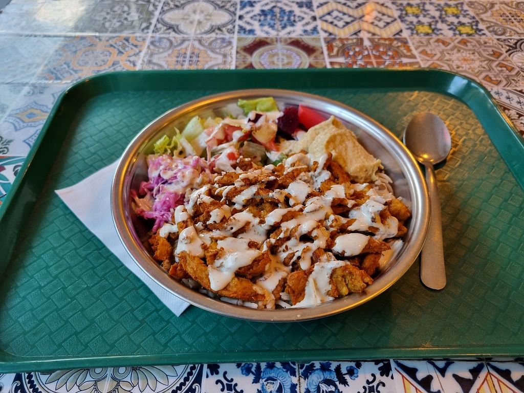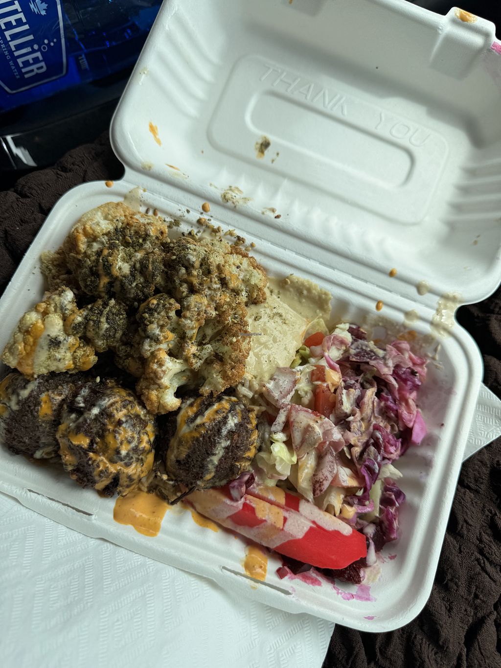 The chick'n shawerma is unreal. Very good. The rice was a bit dry, could use extra tahini and hot sauce but over all it hits the spot