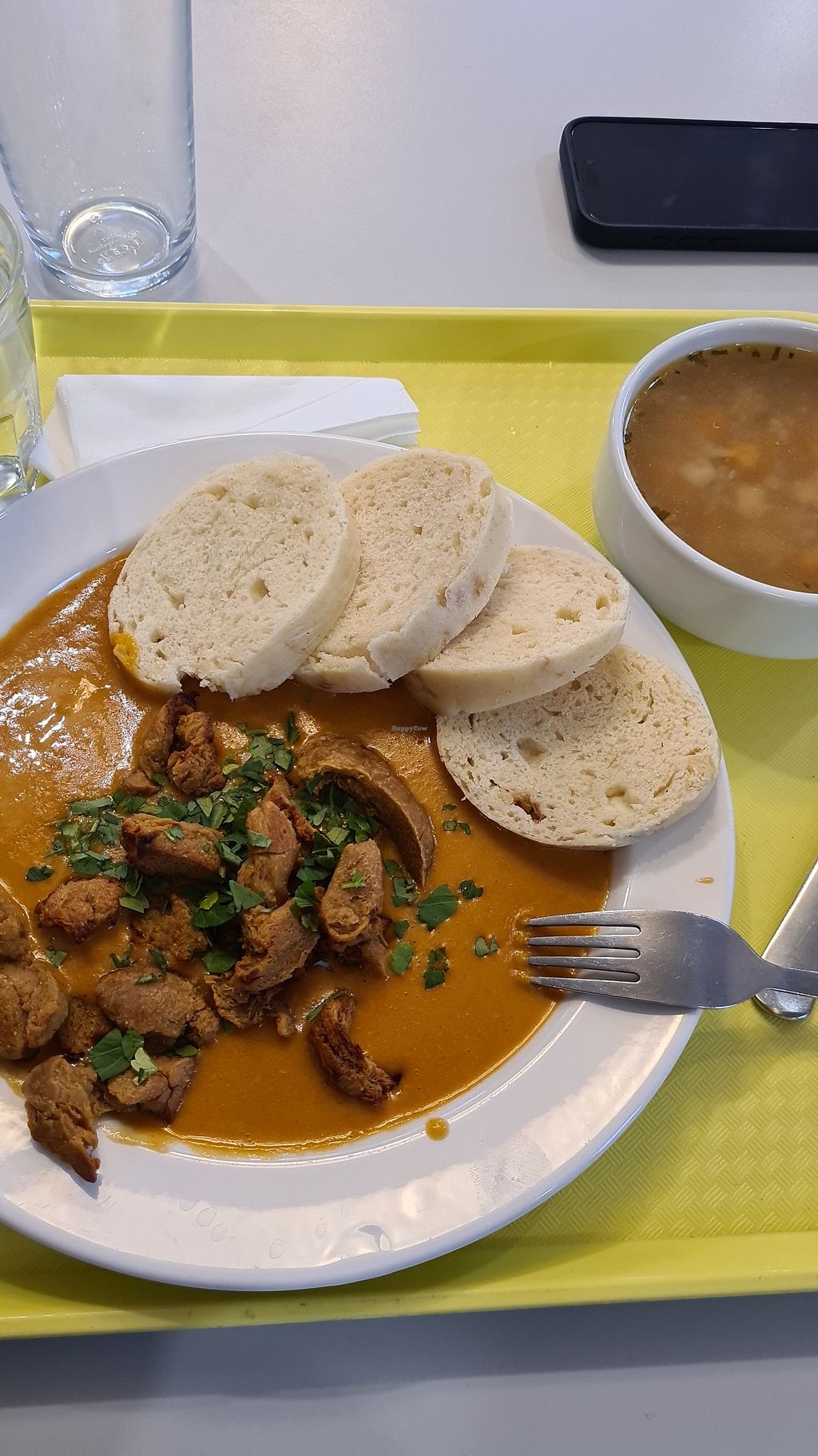 Very good and affordable ❤️ We had a daily menu - zucchini fritters and fries (they ran out of mashed potatoes) and garlic soup. Both delicious.