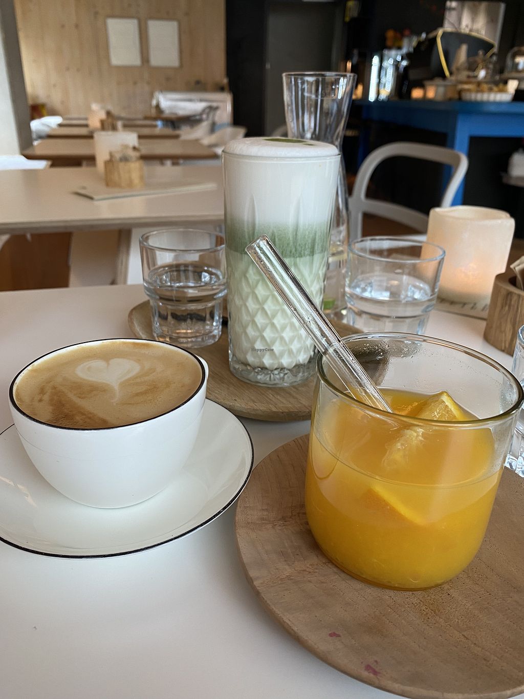 Serves meat, vegan options available. Coffee shop serving drinks and light food. Menu features a vegan plate, smoothie bowls, and smoothies. Plant-based milk alternatives are available. Open Mon-Sat 09:00-20:00, Sun 09:00-19:00.