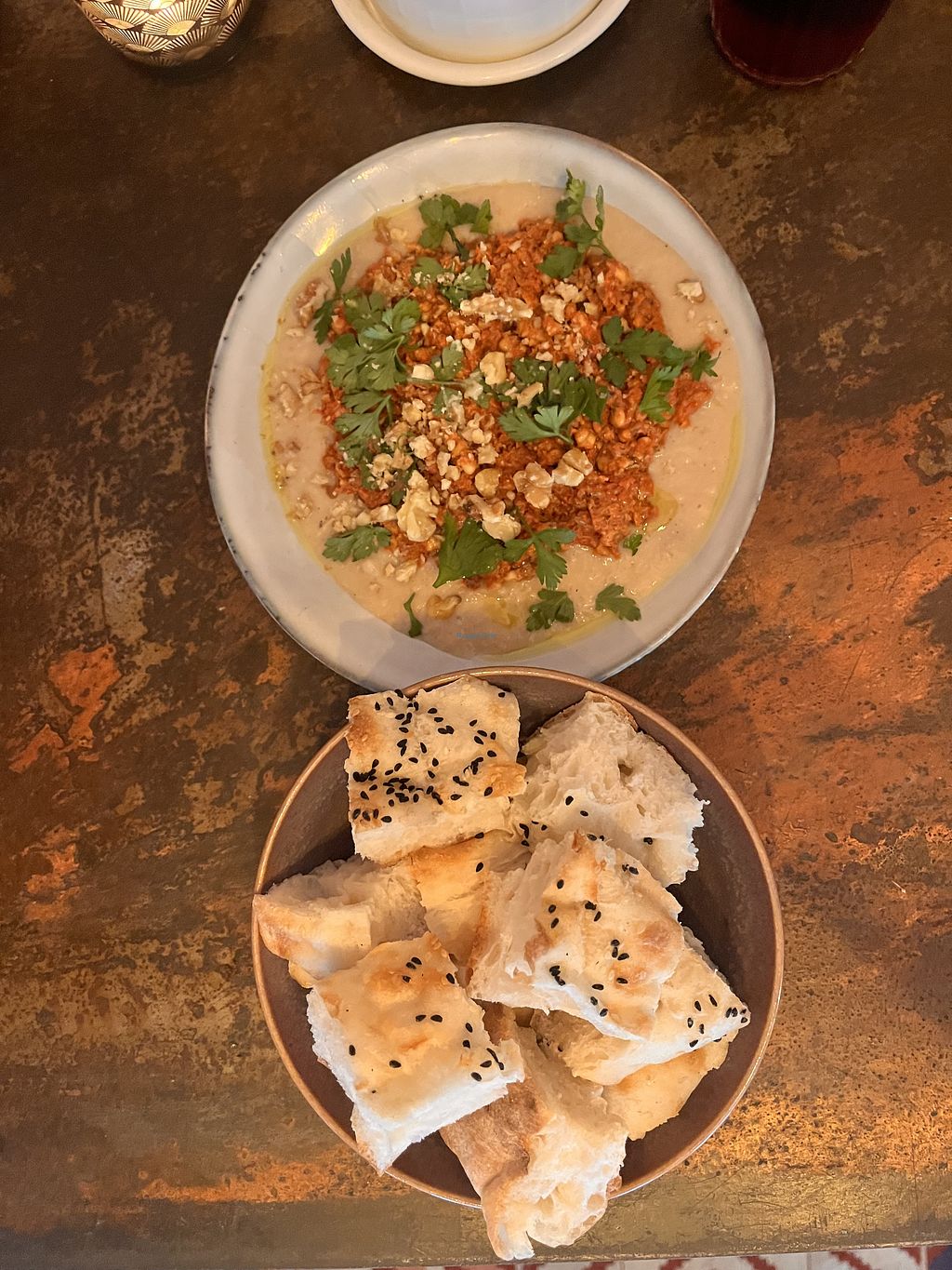 Eden is a place with unusual interior design and friendly and fast service. Vegan options are clearly labelled. I had the pink hummus with flatbread, which was very tasty but unfortunately not quite enough hummus for the flatbread. Upon request I learned that they had reduced the amount of hummus in order not to waste any left-overs. So if you only have the pink hummus like me make sure to ask for an extra tablespoon or so of hummus. All in all a clear recommendation for eating out in Saarbrücken!