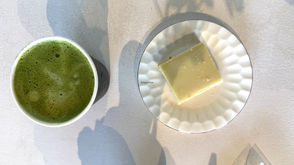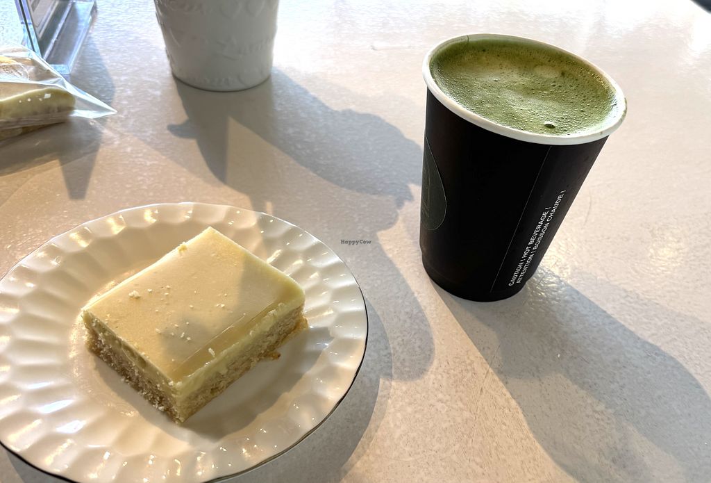 67th visit: almond matcha latte with no sugar, VEGAN KETO GF LEMOND SQUARE never disappointed! So good 🫠