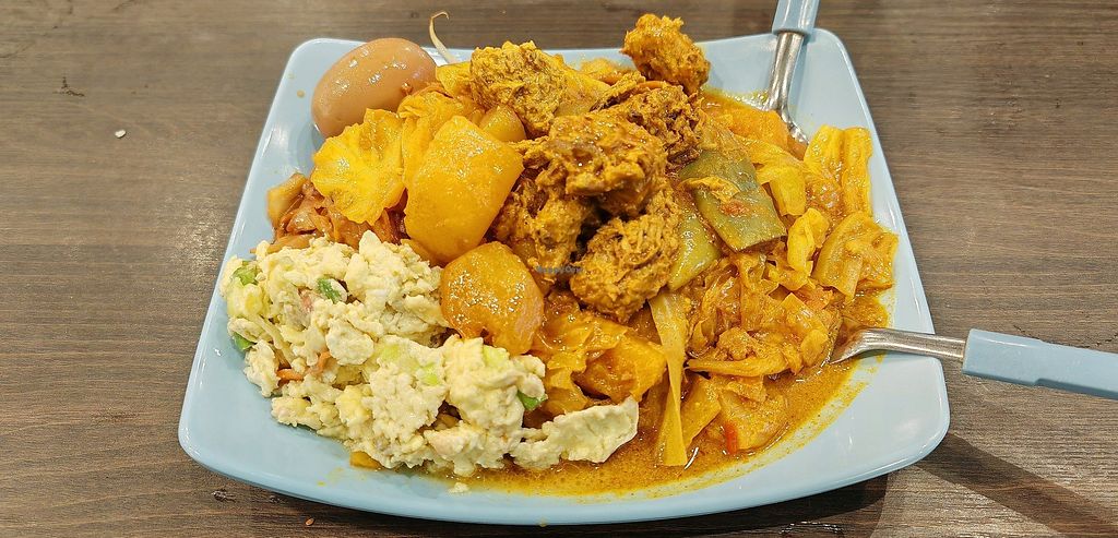 Poor service, with the lady at the counter almost entirely uninterested in serving me. Cold food that tasted like leftovers, with certain dishes being overly salty, and mock meat added generously to items that didn’t contain mock meat even when they don’t in non-veg stalls. My friends brown rice was clumpy and mashed up, which left her in shock.
