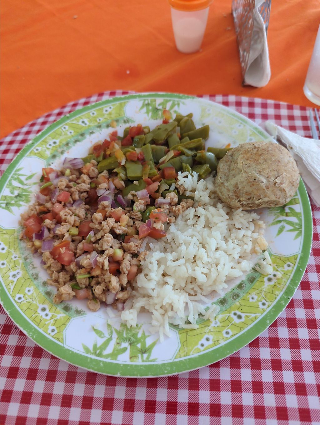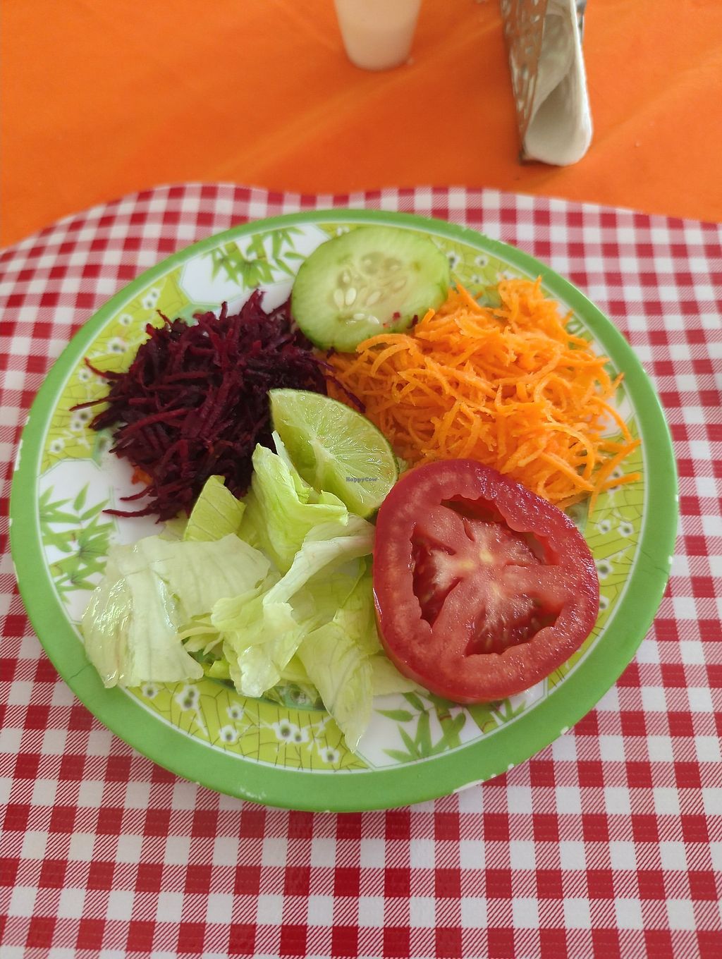 I had the menu of the day which was a salad, soup and main dish of rice and a stew. With this was 2 small bread rolls and a cooldrink. Very satisfying and 100% vegan. Came to $105.