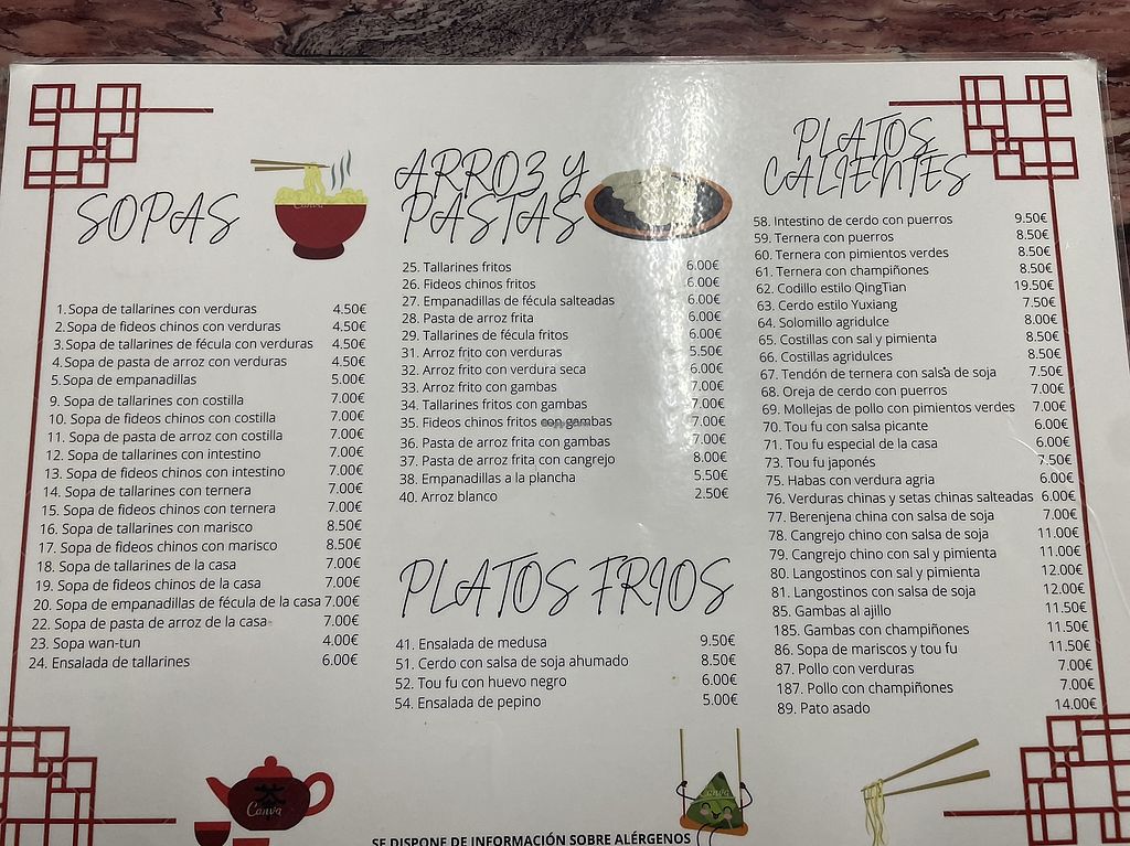 Es un restaurante chino cutre. Nosotros fuimos en diciembre y hacia bastante frio. Tenian varias opciones y la camarera, aunque borde, era efectiva en saber lo que comes y lo que no. Estaba todo bueno y es muy barato.