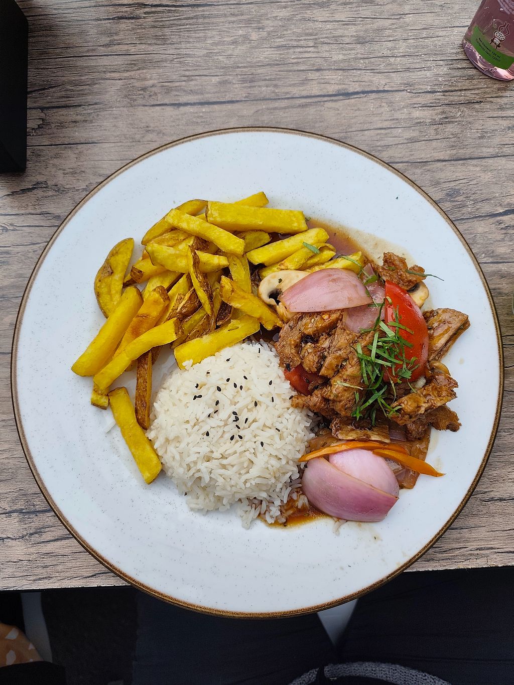Read moreBoth were delicious, the lomo saltado had mushrooms instead of fake meat, which I found healthier and lighter. For dinner, it was perfect.