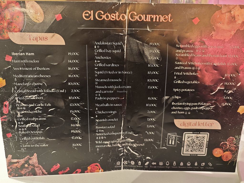 Some vegetarian or vegan possibilities. Very good and good portions. The tinto de Verano was so delicious.