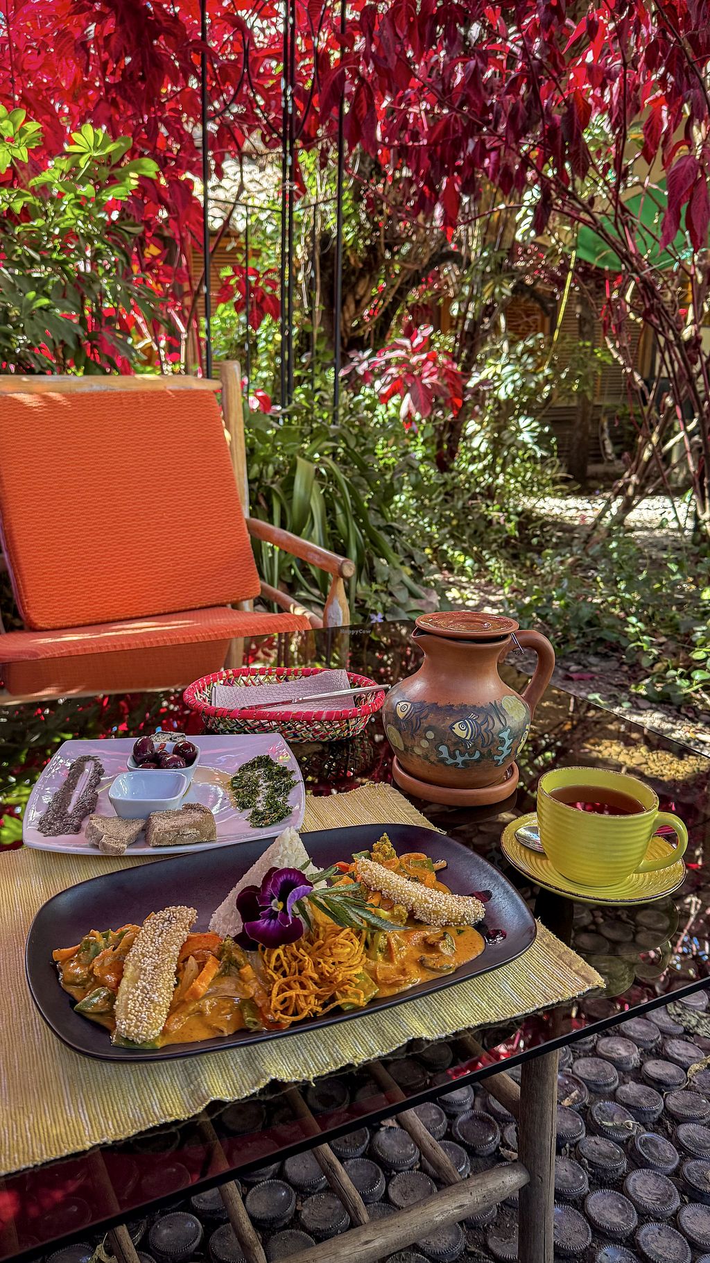 This restaurant is a hidden haven of peace in the loud city of Urubamba. Some tables are in a sunny garden with tropical plants. We had their Arrocife (fried rice with a peanut sauce), Thai Green Curry, both vegan, as well as the goat cheese whole wheat pasta, and the sweet potato ravioli, which are vegetrian. Everything was out of this world, with a special mention for the two vegan dishes which were our favorites. The flavors were bold and harmonious, and all the dishes were accompanied by many imaginative sides (fried plantain, crisped spiralized carrots...) adding additional flavors and textures. The waiters were adorable and it was overall a great experience.