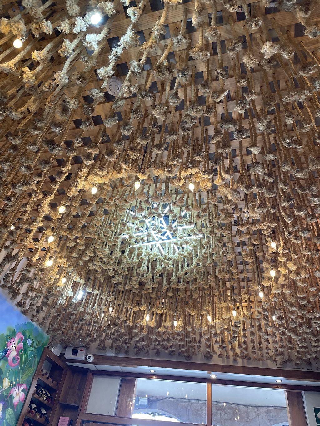 Had to find somewhere for breakfast after arriving in Cusco early from a night bus, this was a great choice. The place has very pretty decor, an interesting light sculpture takes up the ceiling.