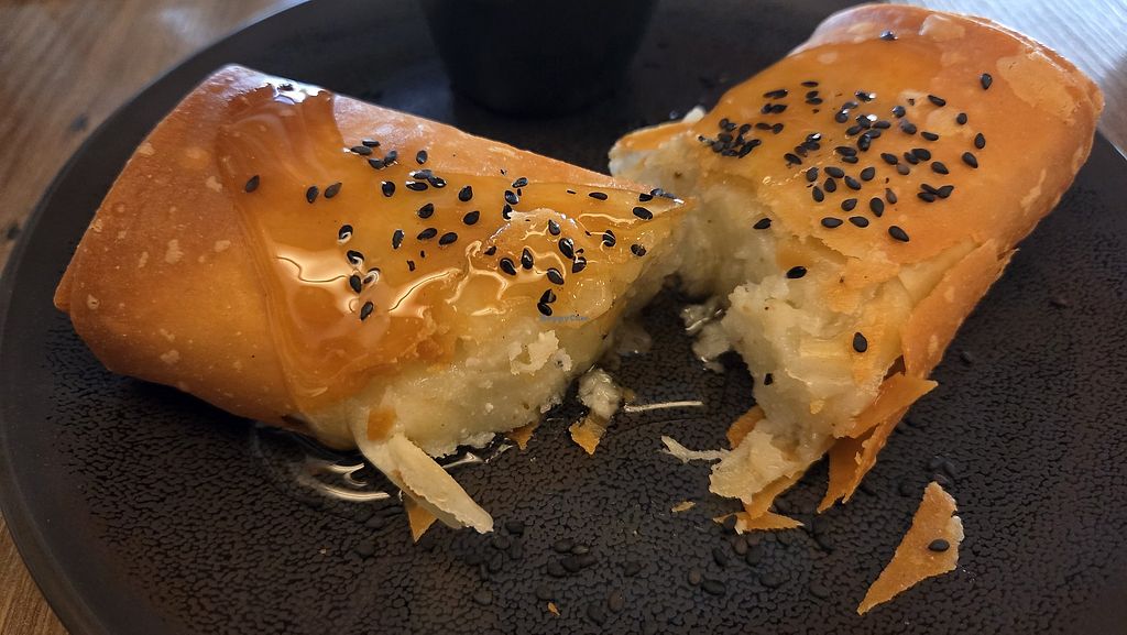 Unfortunately no longer fully vegan, but they still offer plenty of clearly labeled options. Taste-wise, our brunch was a bit underwhelming, except for the saganaki, which was delicious.