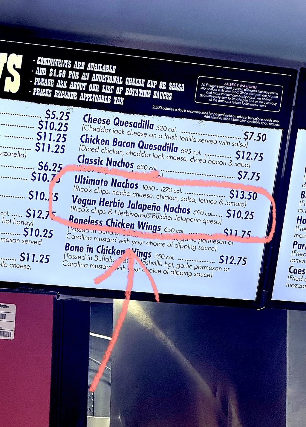 Movie theater featuring recliner seats that shows new releases and special events. Vegan offerings include nachos with Herbivorous Butcher jalapeño queso, vegan popcorn, candy, and other options. Closed Sat.