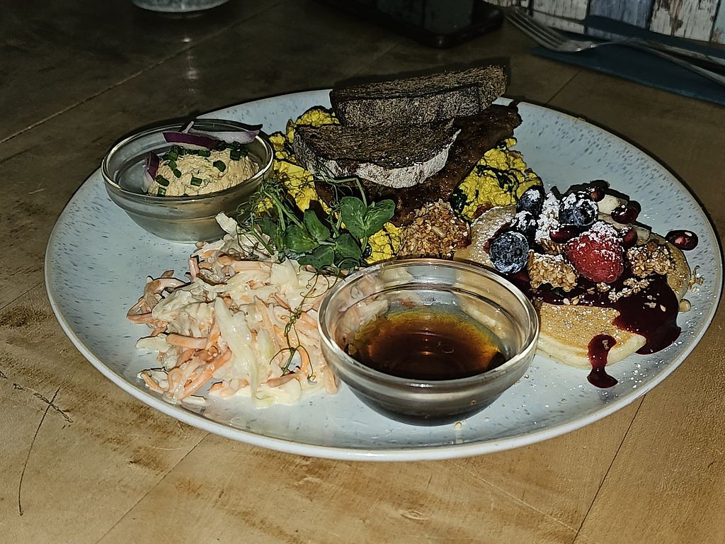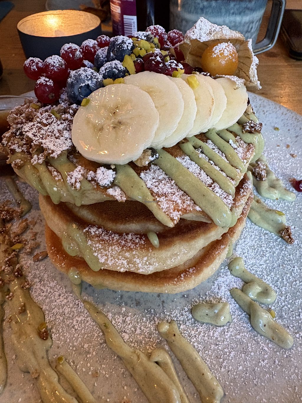 Das Essen war super, Pancakes lecker, und das Avocado Brot mit dem veganen Lax war auch super. Allerdings waren die Preise schon wirklich hoch.
