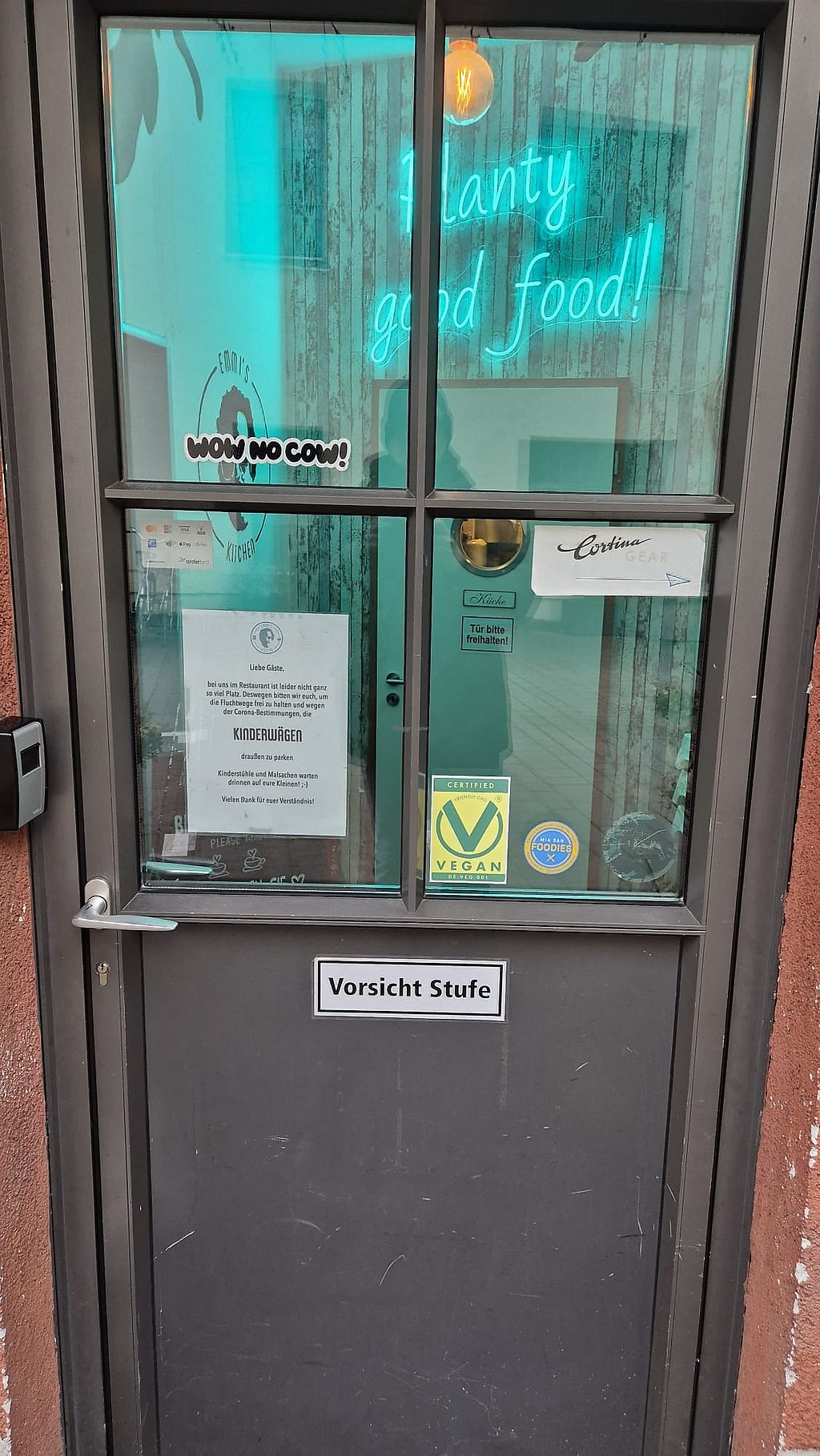 Offers a variety of vegan foods including brunch fare, beyond burger, salads, pots, muffins, and cinnamon rolls. Smoothies and juices available. Became vegan in 2018. Est. 2016 previously at Rosenheimerstrasse 67. Companion animal friendly. Open Mon-Sun 09:00-17:00. Kitchen closes 4pm.