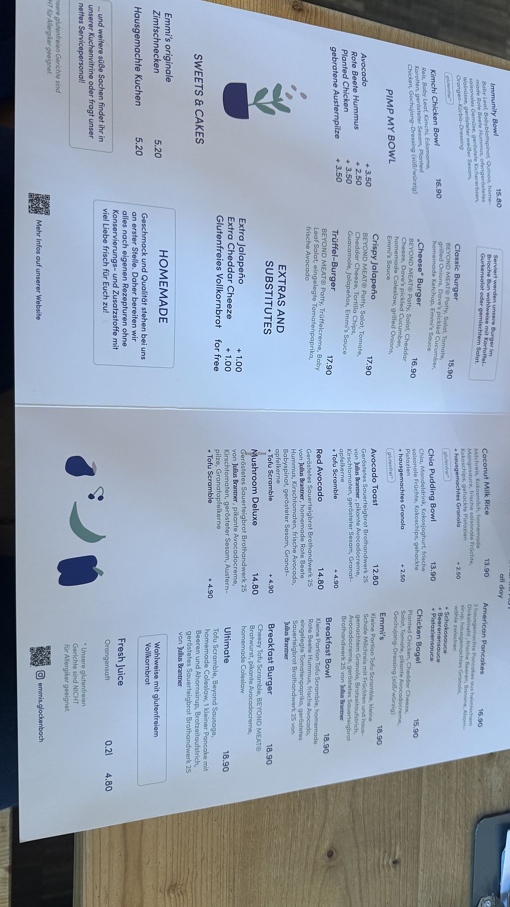 Wir waren zum Frühstücken in Emmi’s Kitchen, die Auswahl an Speisen und Getränken war sehr groß. Wir hatten die Pancakes und den Frühstücksburger. So ein gutes Veganes Rührei haben wir davor noch nicht gegessen.