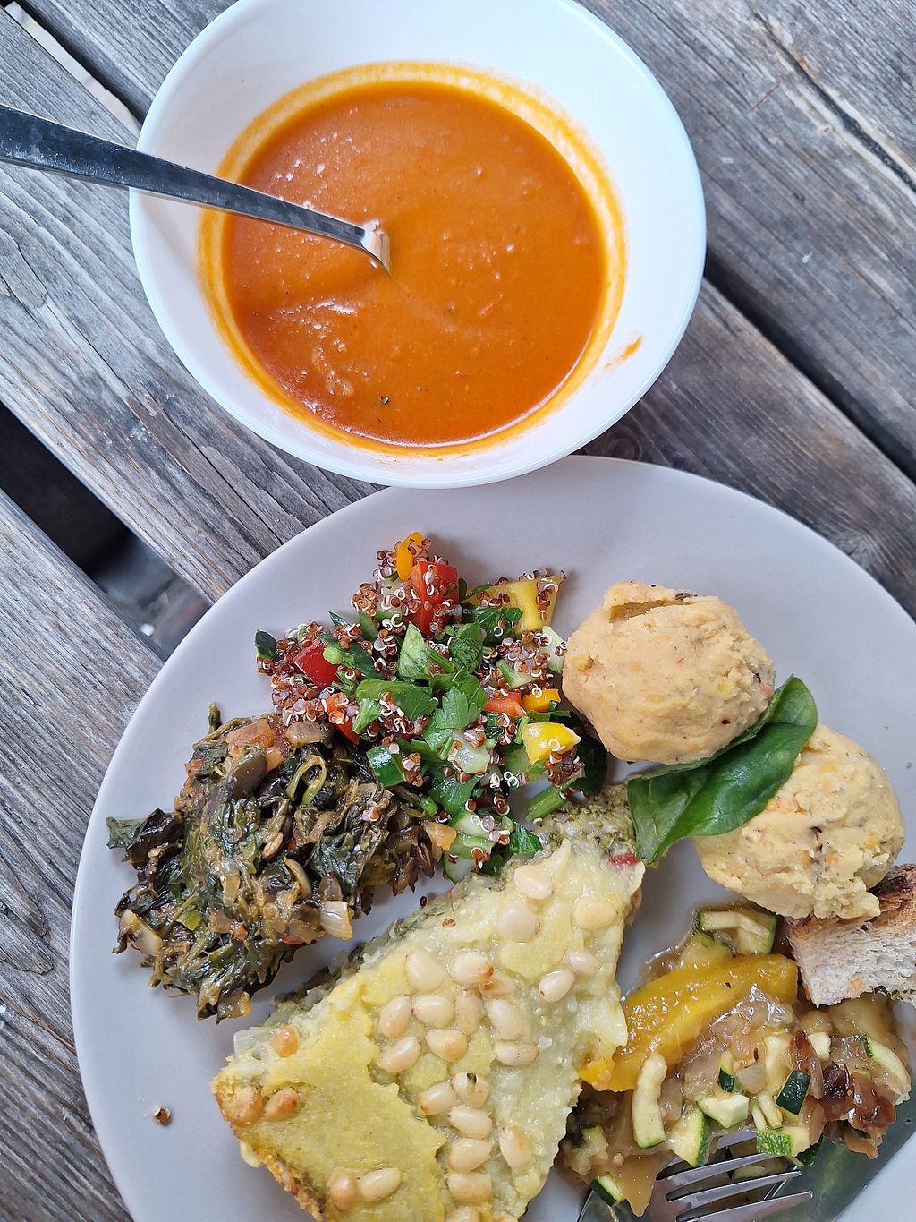 On the day I visited all their food was vegan. I had a piece of pie with three sides, a soup and bread. While the salads and ratatouille didn't knock my socks off, the pie and the soup were super delicious.