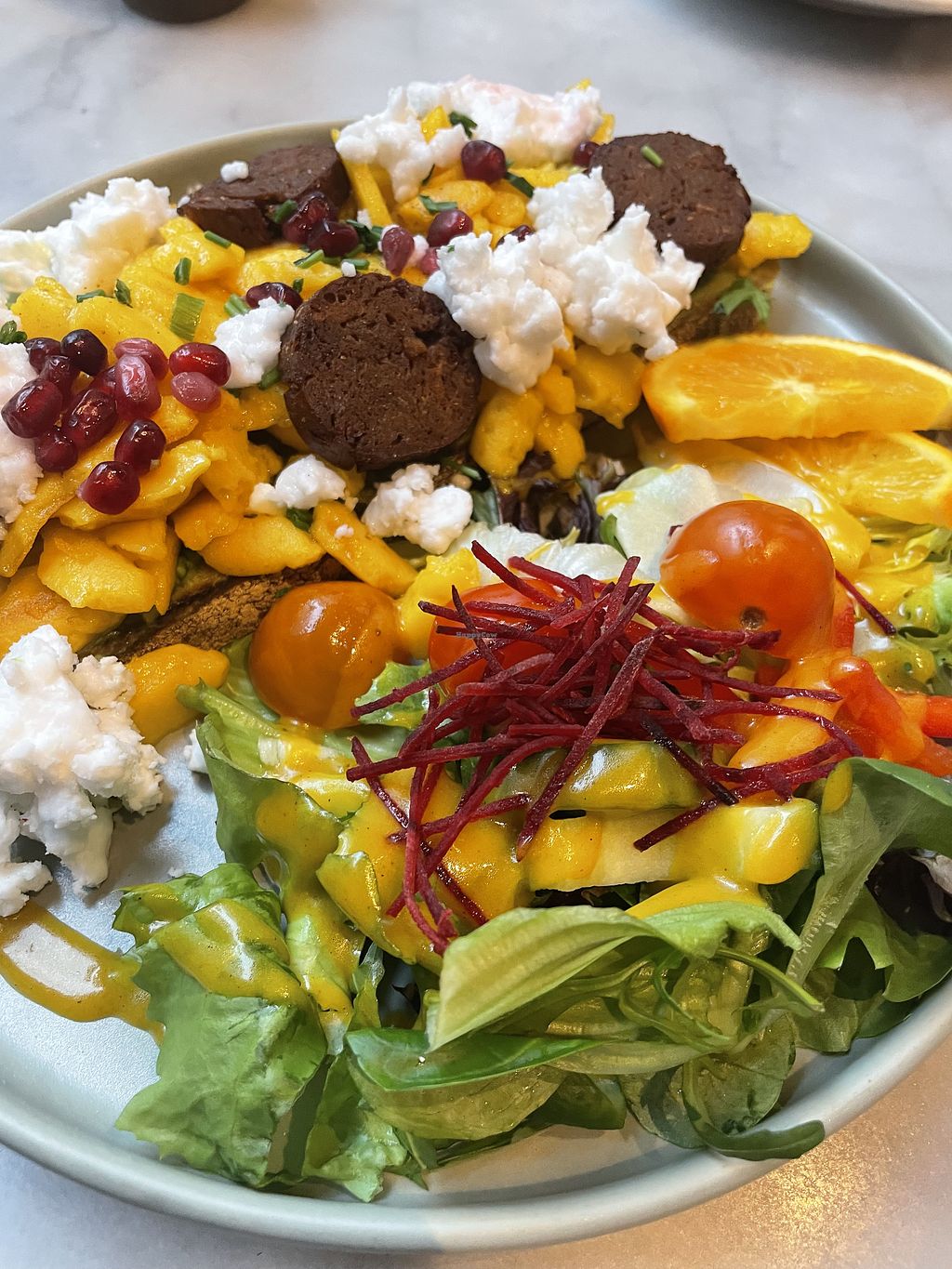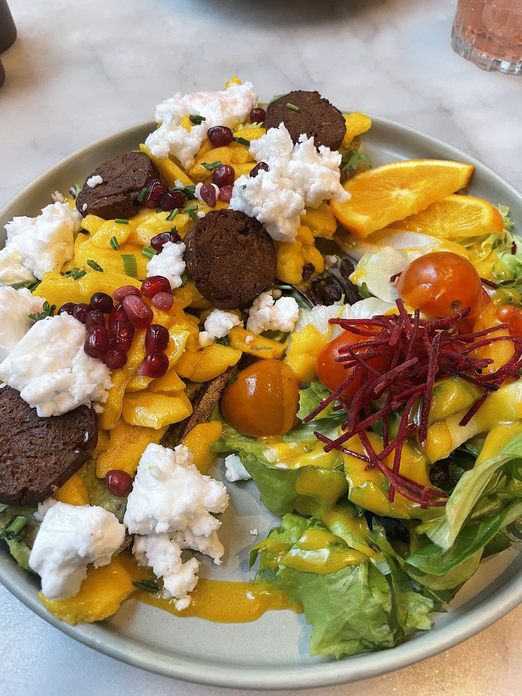 I had the KFC - salad (Korean fried cauliflower) with e.g. vegan feta, avocado, nuts etc. (~15€)