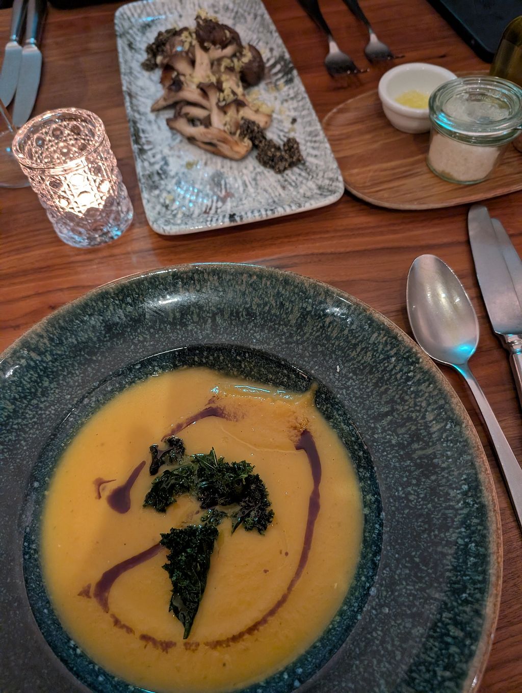 A place for a more expensive dinner. A mushroom entre was too much the same as mushroom main course. A pumpkin soup was not special.