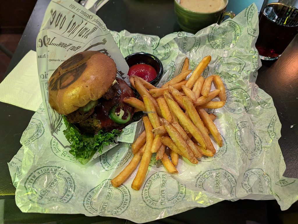 We had a smoked tofu sandwich and a cheese burger. They have really good meat replacements. The fries were amazingly seasoned and the smoked tofu tasted really unique.