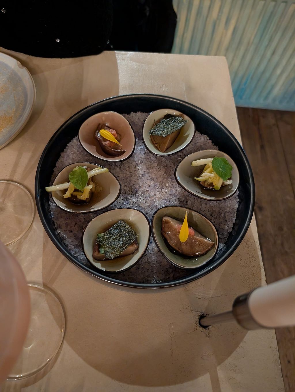 We ordered 3 sharing dishes. The vegan oysters; loved that! I think the sharing dishes are the best, most original options on the menu so the sharing experience might be the thing to go for.