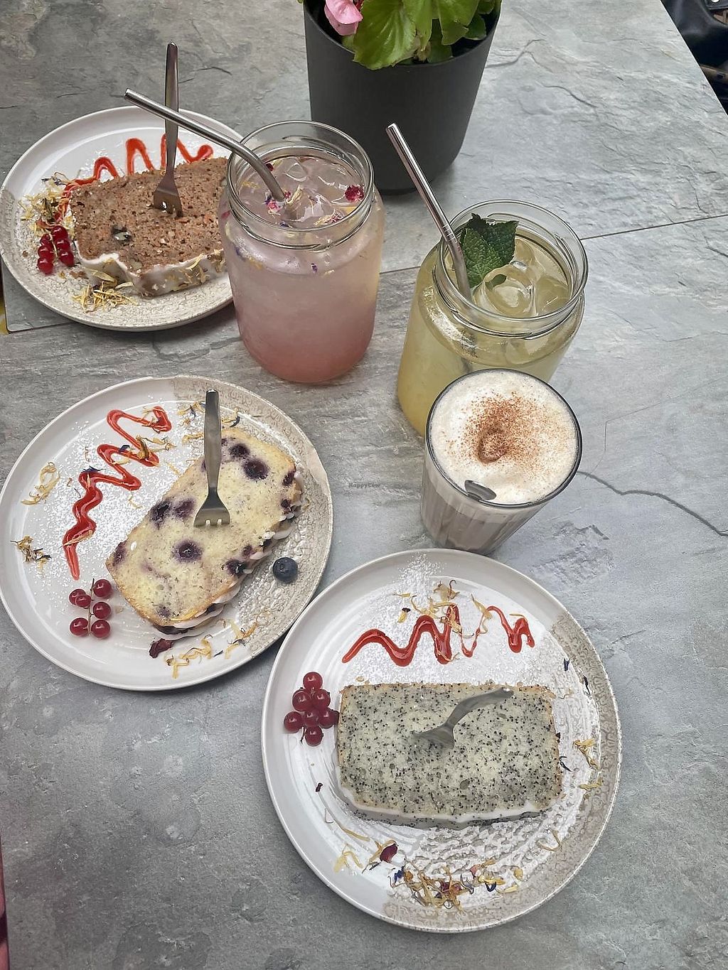 Ich war hier mit ein paar Freunden zum Kuchen essen verabredet, sowohl der Zitronen-Mohn, als auch der Zitronen blaubeer-Kuchen war echt super, wer aber wirklich die Show gestohlen hat war eindeutig der carrot cake, mit Abstand der beste Vegane den ich je hatte ! Auch die Getränke waren super, die Zitronenlimo war schön erfrischend wenn auch etwas Basic, aber die Lavendel Zitronen limo hat dafür um so mehr überzeugt. Am besten fanden wir alle aber den Dirty chai Latte mit hafermilch, der hat uns echt umgehauen im besten Sinn:) Preise sind fair und man kann sowohl drinnen als auch draußen schön sitzen, overall eine absolute Herzens-Empfehlung!!