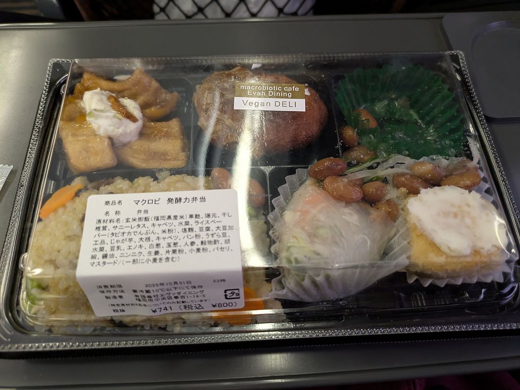 Great location for vegan travelers to pick up some bento boxes on the way.