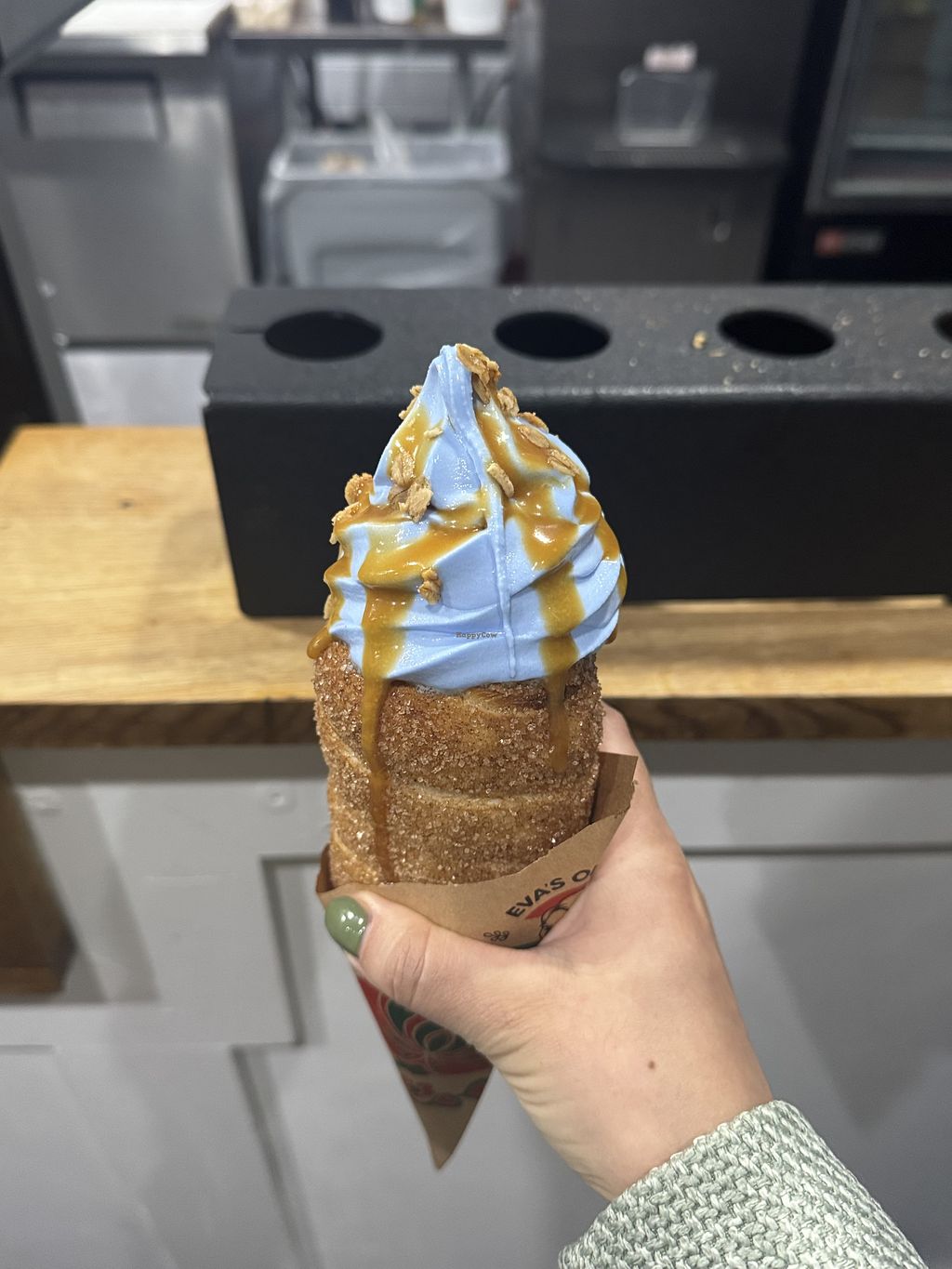 I was so happy to find Eva’s Original Chimneys has amazing vegan options! 💚 The freshly baked warm chimney cone paired with their vegan soft-serve was absolute perfection , my that mix of crispy, fluffy dough and creamy plant-based ice cream is something special