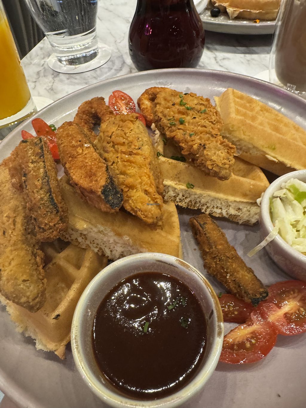 Had a great brunch here. It’s not fully vegan or vegetarian but they have an extensive vegan menu - waffles, pancakes, omelettes, eggs Benedict. Not just the normal 1 or 2 vegan options that are at most places that aren’t fully vegan. And the options are even better than a lot of fully vegan spots I’ve been to. Pricey but good.