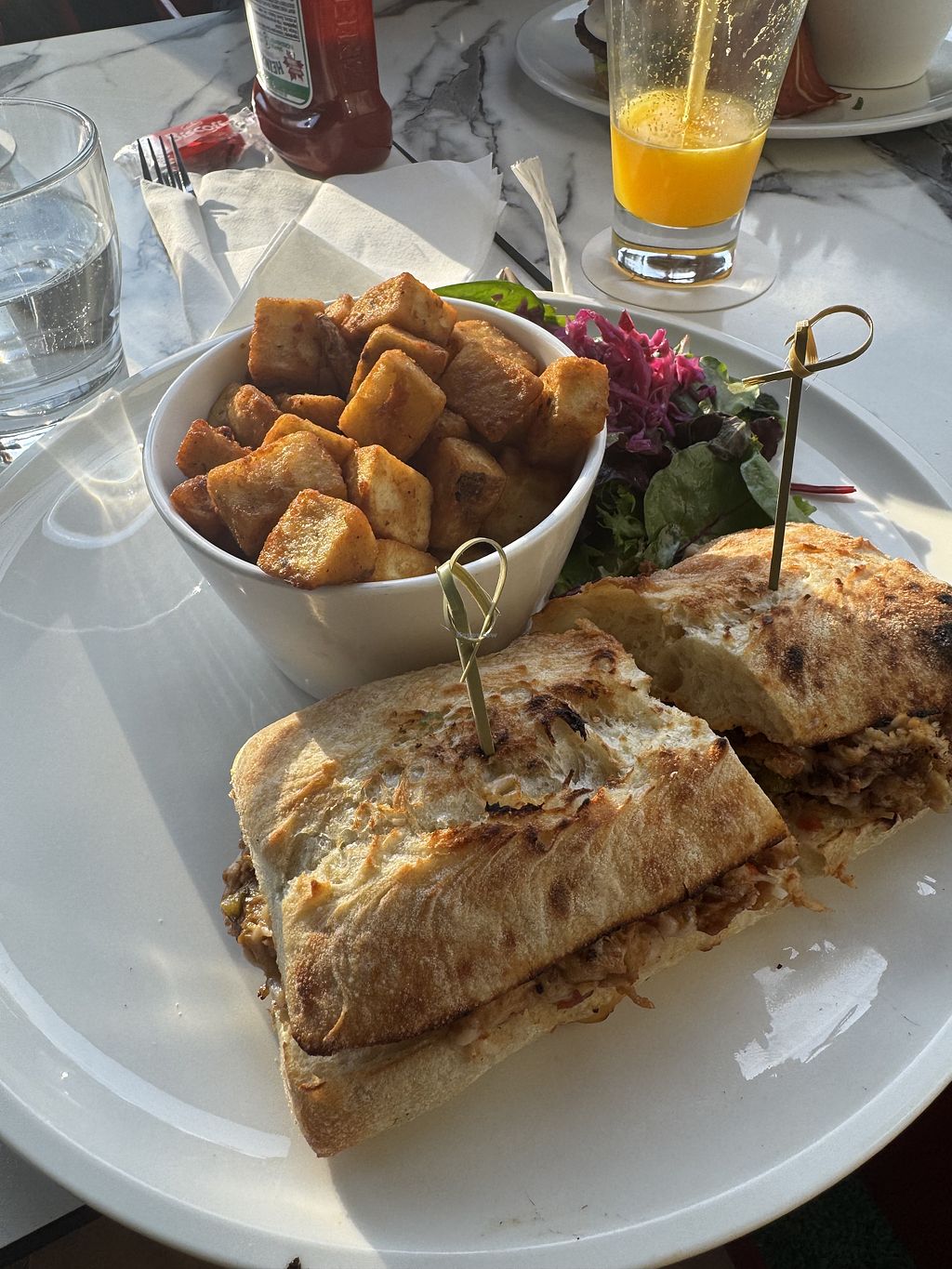 I love a good brunch spot, and this place did not disappoint! The vibe was really nice and lively — it was super busy when we went, which is always a good sign. We sat outside sipping hot chocolates in the crisp air, and it was such a perfect way to start the day. They have quite a few vegan options, and everything we tried was flavorful and satisfying. Definitely worth a visit if you’re looking for a relaxed brunch in Toronto with solid vegan choices.