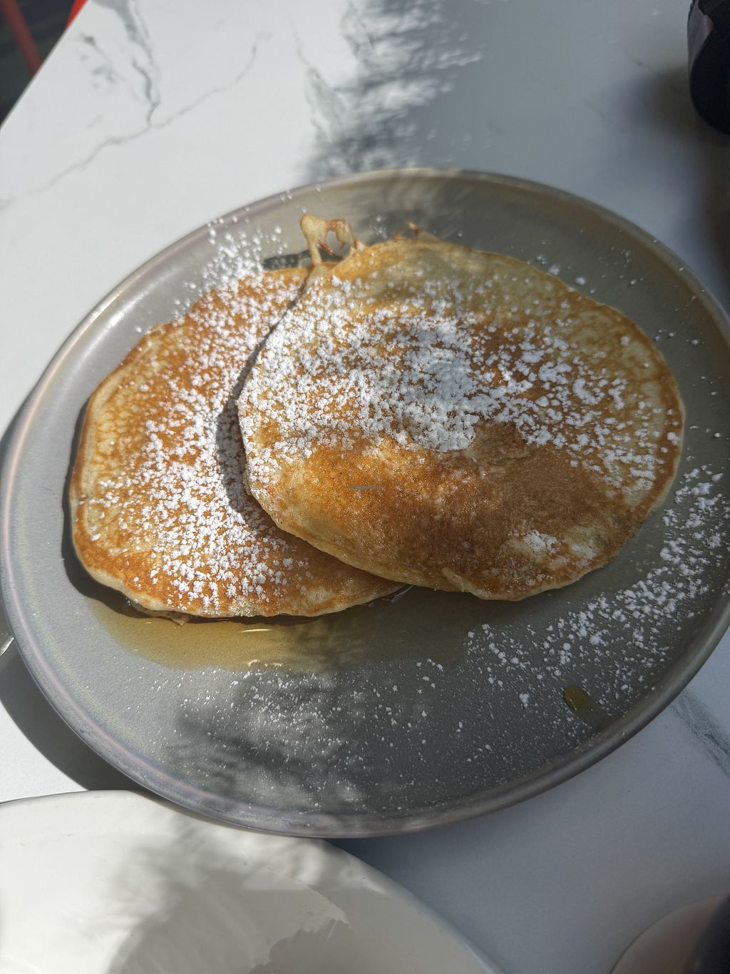 The menu has hits and misses: the vegan chicken didn’t quite impress, and the egg on the burger was bland, but the pancakes were absolutely delicious , fluffy, perfectly cooked, and a real standout. 🥞🍓