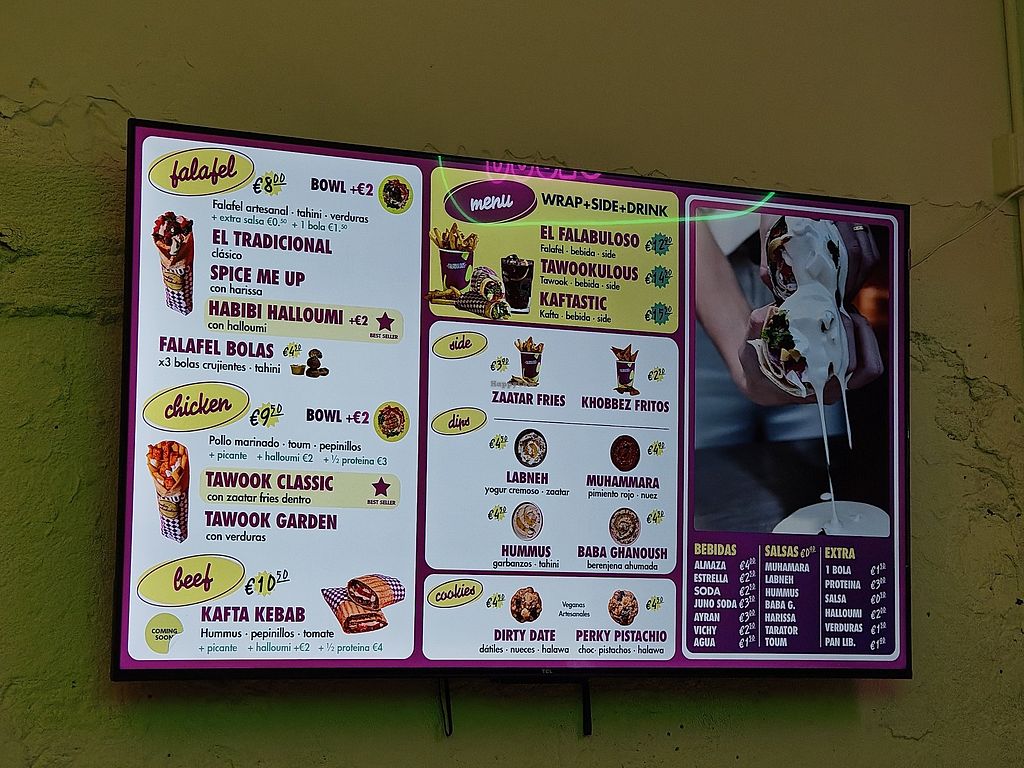 Extremely tasty falafel which can sometimes be hard to find, definitely recommend trying fabulous if you're in the area. Clearly marked vegan items and the owner is very friendly and accommodating to vegans.