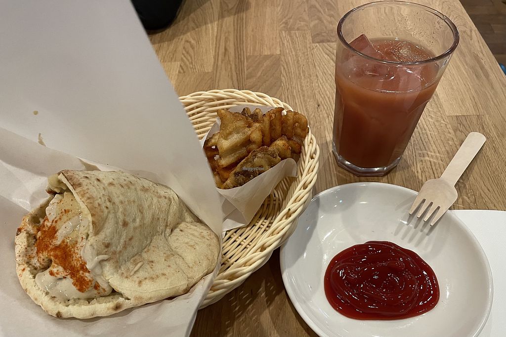 I ended up here after being turned away from Vegan Izakaya Masaka. I was glad to have the option available, but ultimately, this is pretty unremarkable fast food. The falafels were dry and clearly not fresh. The side of soup was about half a cup/120 mL.