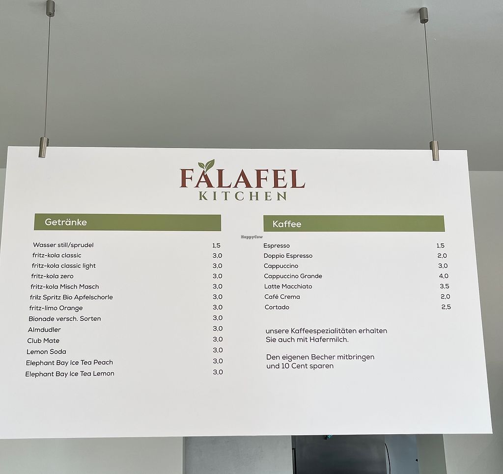 Serves meat, vegan options available. Bistro with a focus on falafel. Vegan menu section is clearly outlined and includes a range of vegan sandwiches. Open Mon-Sat 11:30-20:00. Closed Sun.