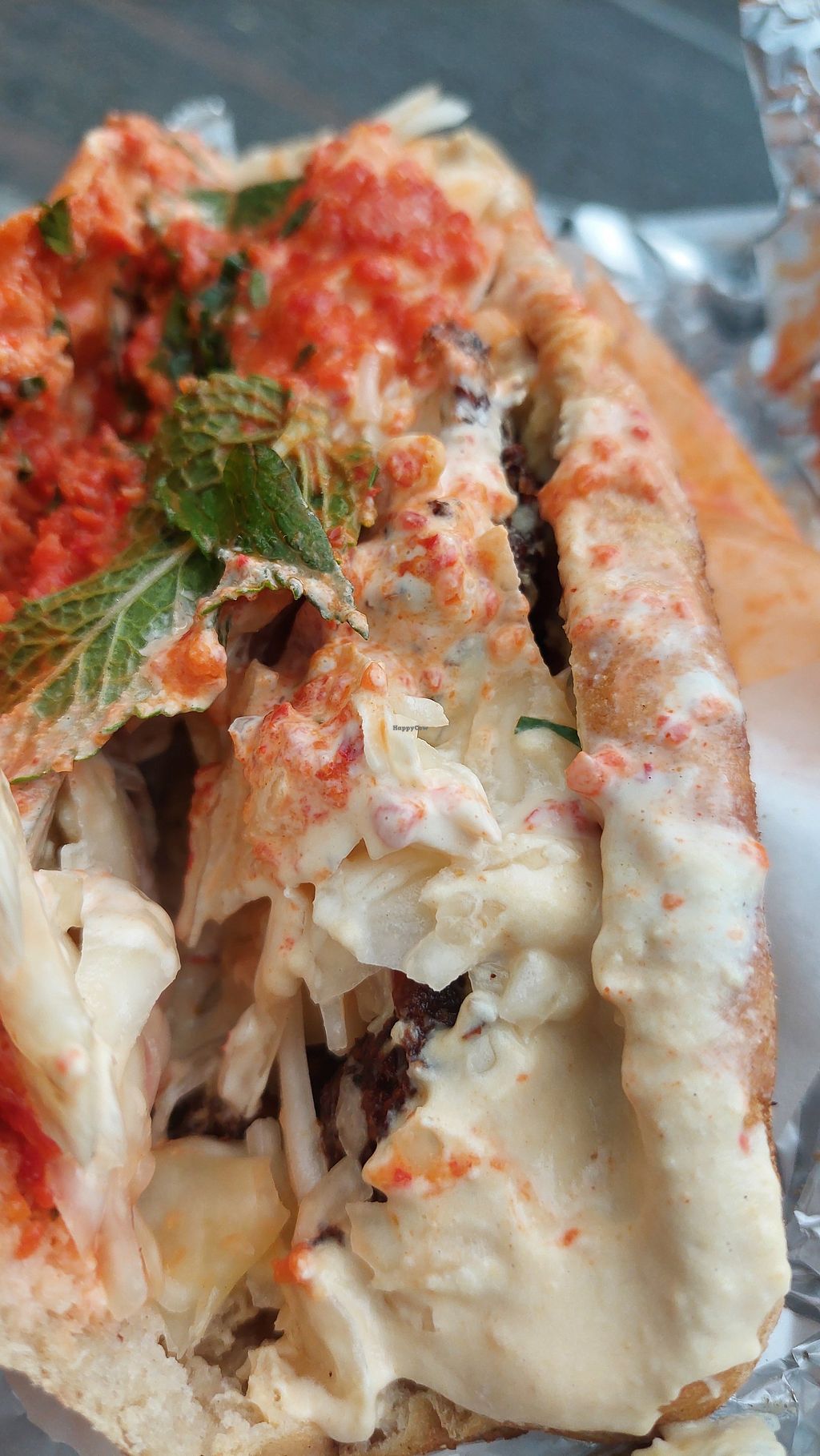 Endlich gute, frische Falafeln und Hummus eine Tahin-Soße 💚 Haben das Sandwich mit Auberginenscheiben das mit Auberginencreme probiert, beides war super (: