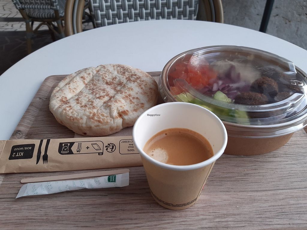 Nice seems to be losing vegan restaurants so it was a relief to find FALAFEL. You order falafel in pitta bread or a bowl and add salads and sauces. I think the only non vegan ingredient is cheese, but do check. You order on a screen. Seating is at outside tables. A very helpful and friendly server. Take away and delivery also available.