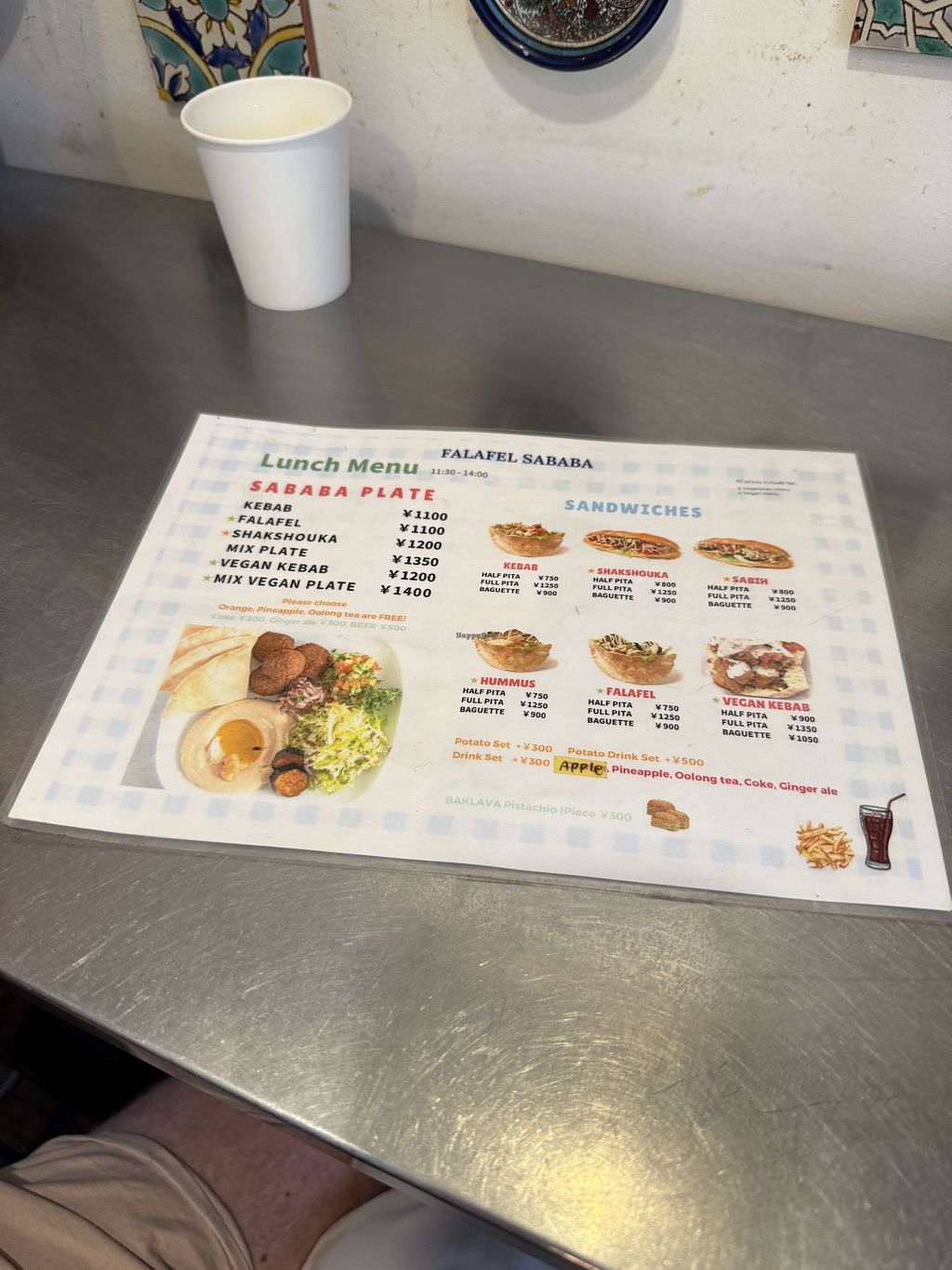 Read moreI went with their Vegan Kebab plate (¥1600) which included falafel, hummus, salad, pita, and other sides. The hummus was well-made and was the best part of the meal. If you're hungry, going for the plate felt like the best move.