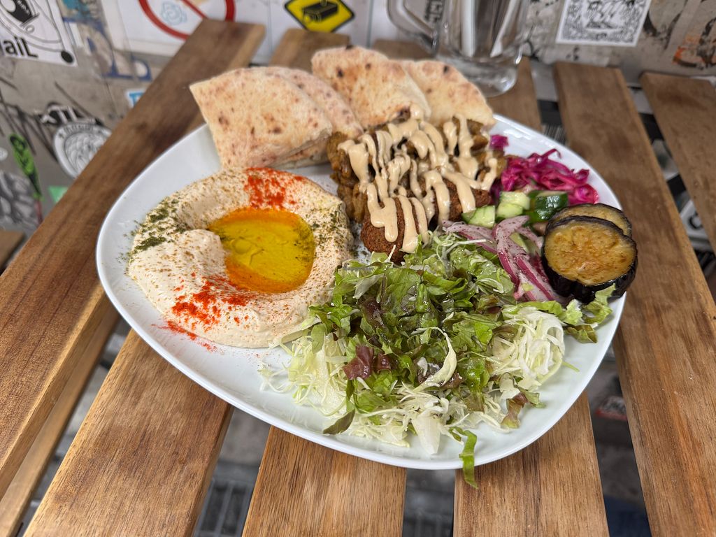 Read moreThe two of us weren’t extremely hungry, so we decided to share a mixed vegan platter. We were asked to sit at one of the two tables outside since they have limited indoor seating and require one order per person (understandably).