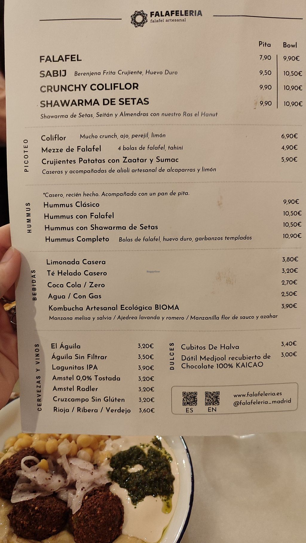 Absolutely devoured the falafel in pita bread with tahini sauce. Utterly delicious and have been recommending this place to everyone I can! Will definitely be returning next time we’re in Madrid. Also very fair prices too.