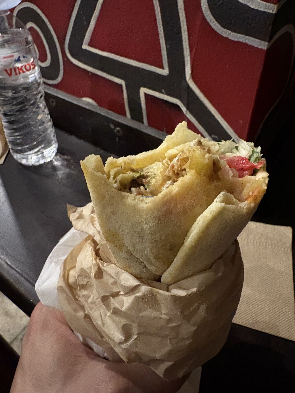 Walked far to find this place in a part of town we hadn’t been to yet. So worth it! Huge wraps that were mouth watering and super inexpensive. Quick service cute outdoor seating.