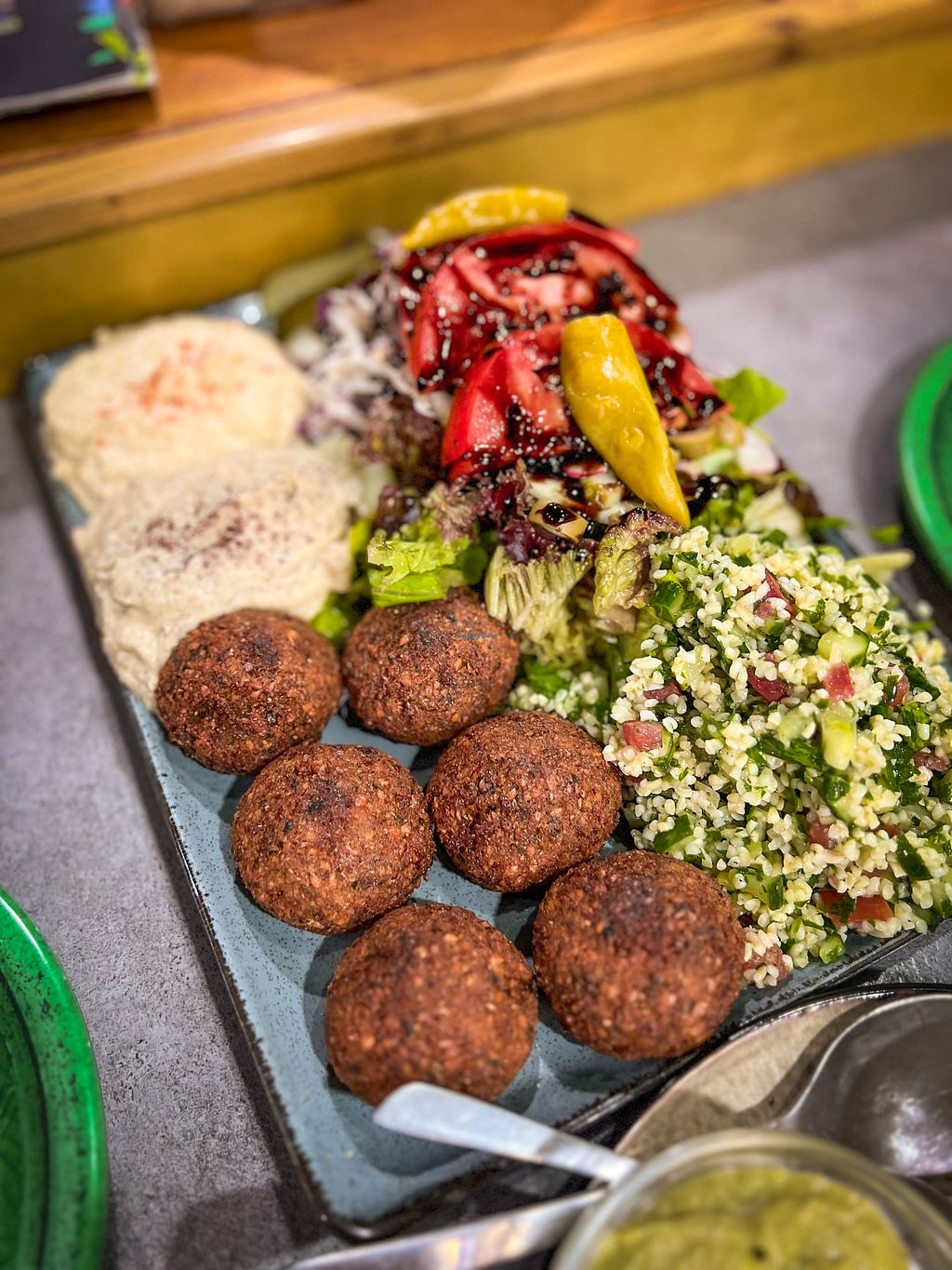 The falafel plate is delicious, and comes with three dips! Ask to swap yoghurt sauce for guacamole to make vegan. Lovely staff. Great option very close to old town.