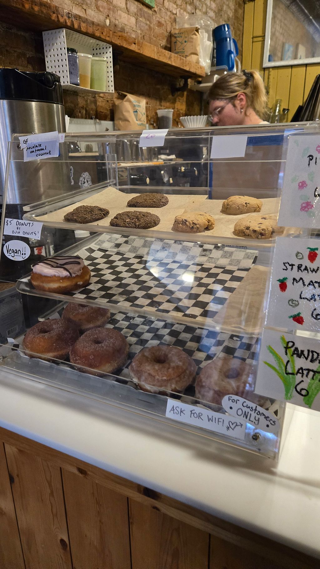 Adorable small vegan cafe in Brooklyn offering amazing vegan donuts from Dunwell!