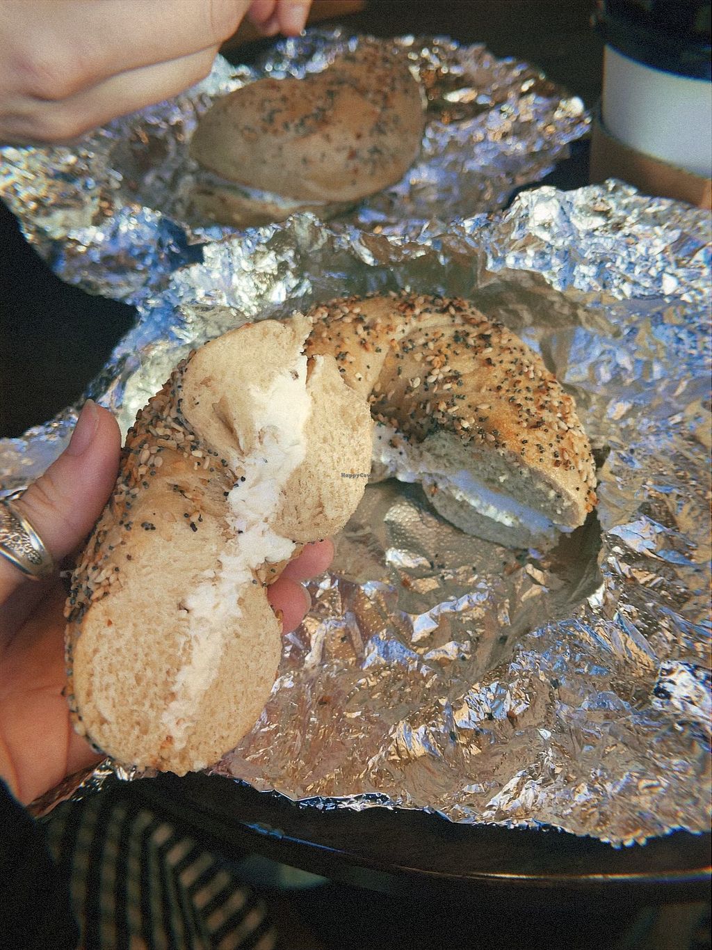 A cute cafe that has great vegan bagels with lots of options. I especially like their vegan cream cheese. They also have treats for dogs when they visit.