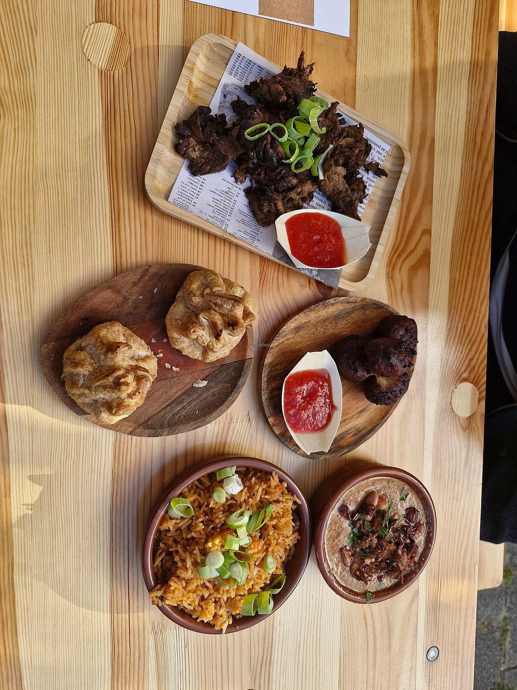 The food itself just had a wow-factor. Due to it being something simple, like baked potatoes, fried rice or cooked beans, it was served extremely quickly. Even though it was simple, it tasted like nothing you would expect. Each Mezze, most based on Family recipes from Gambia, had a unique taste which was powerful and savoury. Thee simplicity of the base foods with the amazing spice mixture really gave it that extra oomph, and it was a magcial experience every time. The portion sizes were just right, and you would feel full after three or four individual Mezzes.