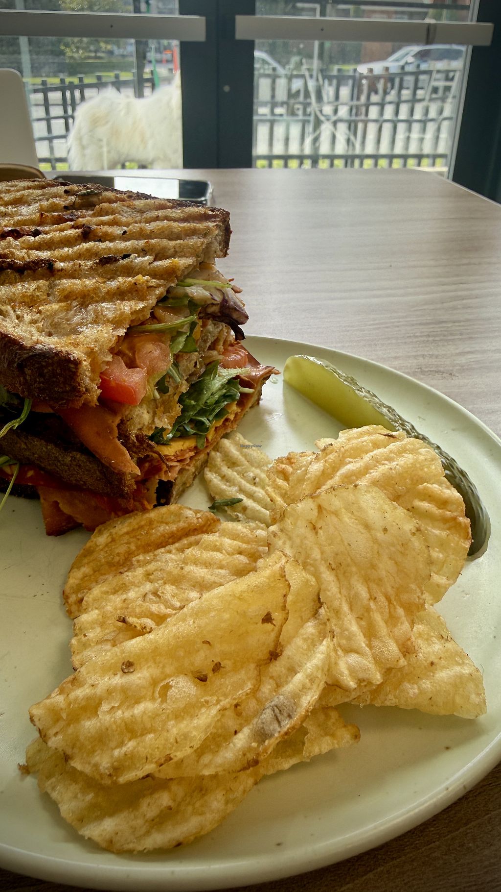 The café is super cozy and you immediately feel at home, although the aesthetics are very clean. Both the sandwiches and the sweet pastries are delicious and plant based. The staff is super friendly. Highly recommended!