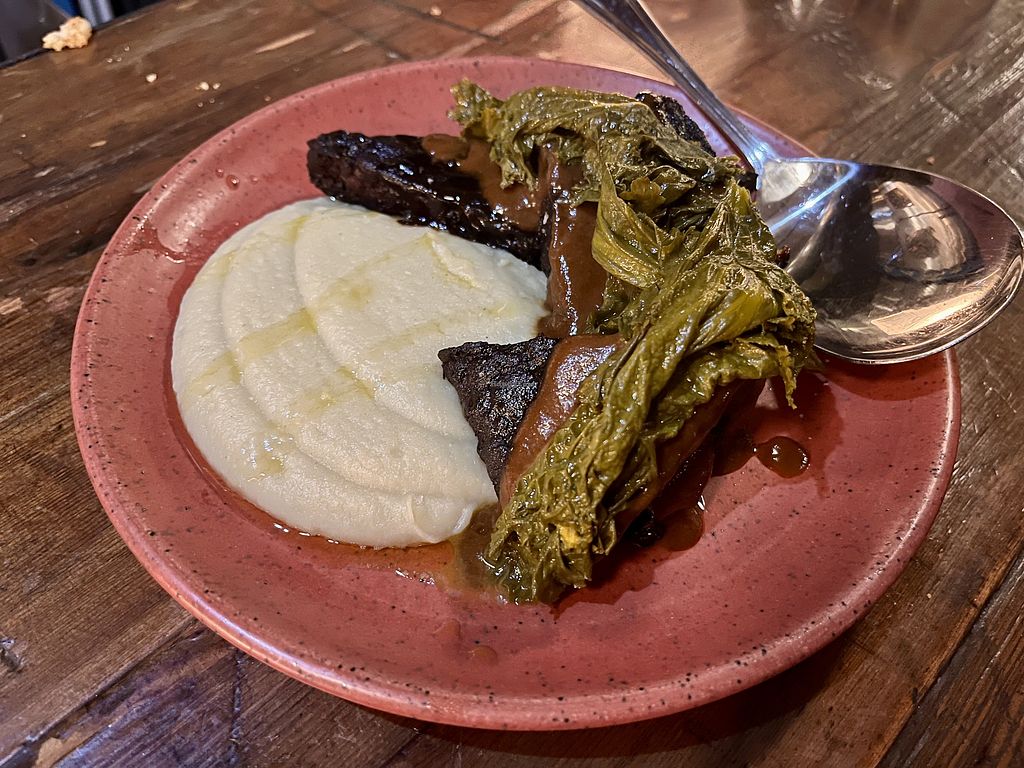 We made a reservation for dinner, which I recommend, as space fill up fast. We tried the grilled focaccia with black garlic butter, the smoky collard greens, the masa dumplings (chochoyotes) and the seitan schnitzel. The collard greens were absolutely amazing—smoky, tangy and the fried onions gave them a delicious crunch! The other dishes were just ok. The schnitzel was kind of tough to cut. The sauce on it was really good but there wasn’t enough to cover it. The dumplings also had a really flavorful sauce, but didn’t have much flavor themselves. The bread was a tasty sourdough focaccia but my partner didn’t like how it had been cut (sliced from the top but now the whole way so you had to awkwardly tear it, but it didn’t tear through the crispy bottom). Overall the food was okay, but we expected more. We might give them another chance in the future. But for fine dining, I would recommend Astera.